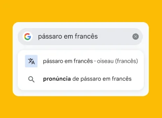 Receba resultados instantâneos quando pede para traduzir palavras ou expressões curtas escrevendo "[palavra] em [idioma]".